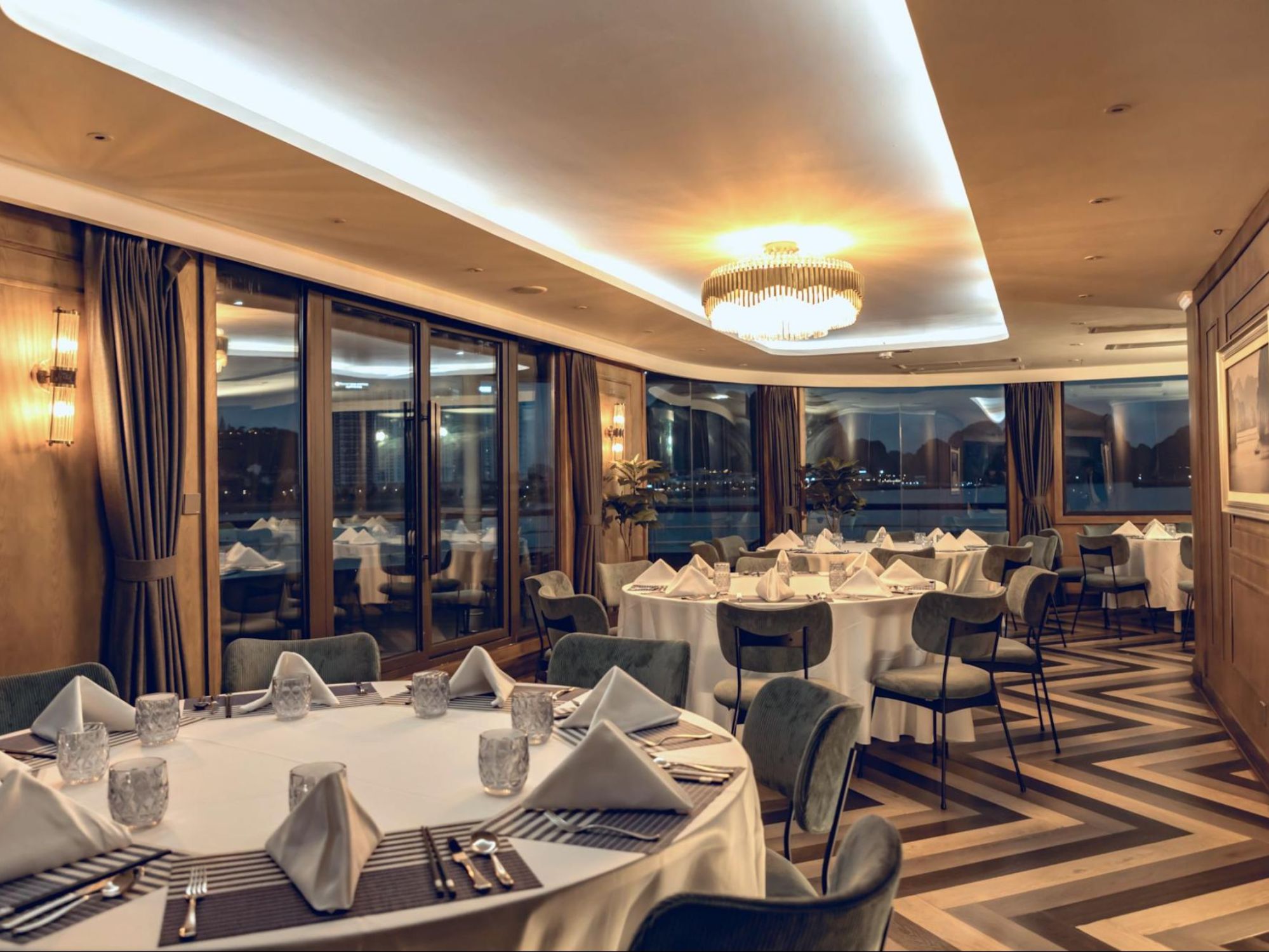 Also, what makes your food even more special is the ambiance. Picture yourself enjoying a buffet setup in an elegant dining room, all while offering panoramic views of the stunning Halong Bay. It does not get any better than that! Well, it does, with a Michelin-standard dinner on the sundeck, although that comes with an extra top-up fee.