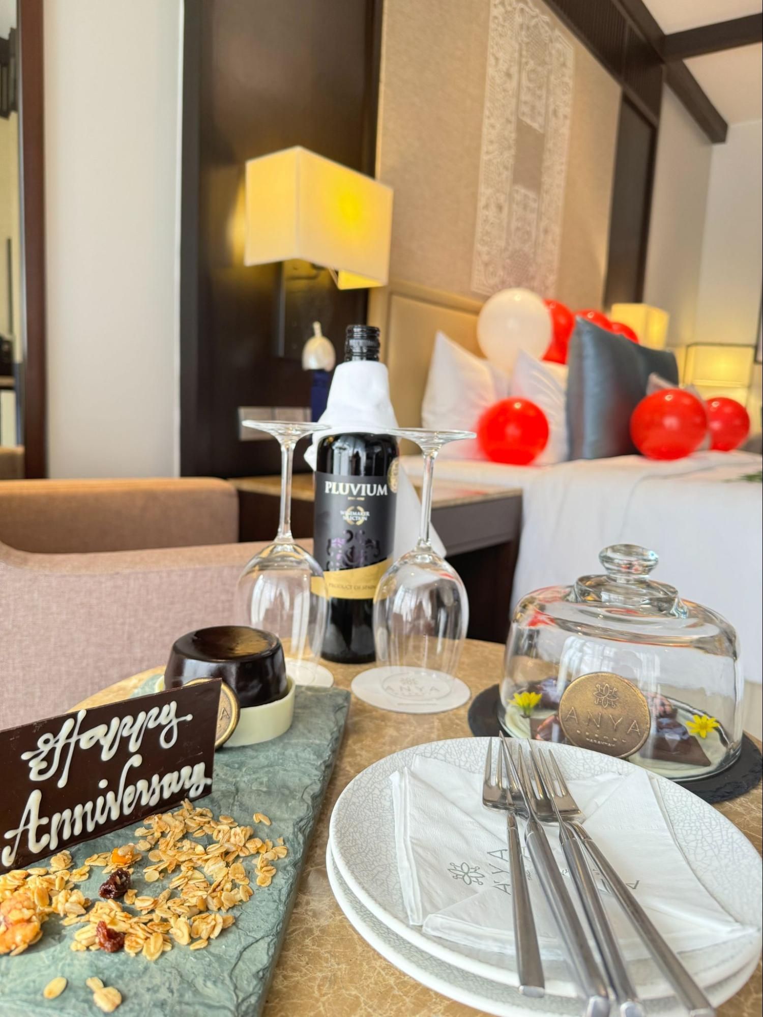 If you prefer to customise your hotel suite further, other amenities to your liking can also be requested through your own Anya Experience Assistant. Whether it is selecting your preferred pillow type or infusing your suite with a bespoke scent, every effort is made to ensure your stay feels like home. During our visit, we were delighted to find personalized birthday and anniversary greetings displayed on the TV screen upon arrival. The thoughtful touches continued with “Happy Anniversary” written on the bed, a platter of chocolates, a bottle of fine wine, and a fresh fruit platter—all of which made our celebration truly special.