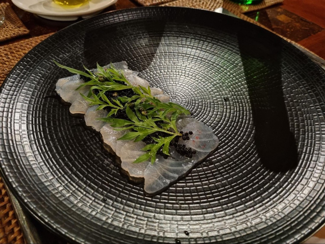 The artistry does not stop there as you take in a feast for the senses at the Tempayan. Designed after the Balinese pavilion ‘wantilan’, this restaurant offers an airy dining room with panoramic views of the rice paddies . The food is just as amazing as the ambience – all thanks to Executive Chef Dean Nor and his 17 years of professional culinary experience. We have to admit, the entire experience was a steal, as it was quite rare to experience an Omakase with such top-tier quality at this price point. The fact that Chef Dean was super nice was just the cherry on top! He made sure to guide us in every step of our 5-course dinner, which really brought out the best in every bite.