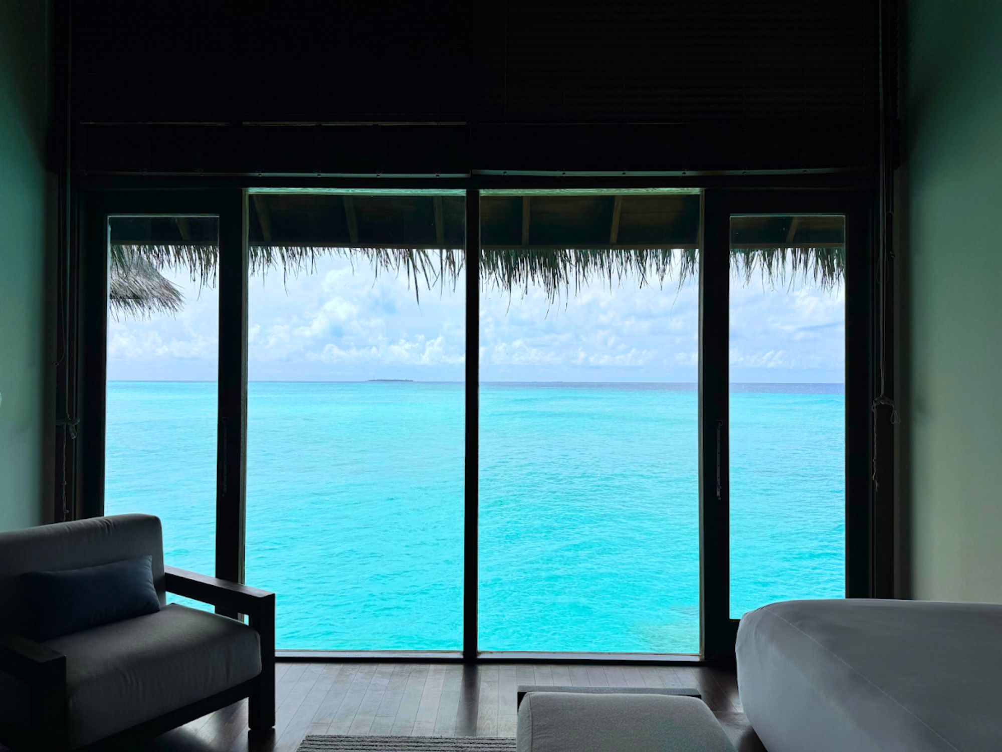 And oh..the bedroom. With its floor-to-ceiling windows offering uninterrupted views of the ocean, every morning feels like waking up in paradise. The most stunning view greets you the moment you open your eyes, immersing you in the beauty of the Maldives from the very start of your day.