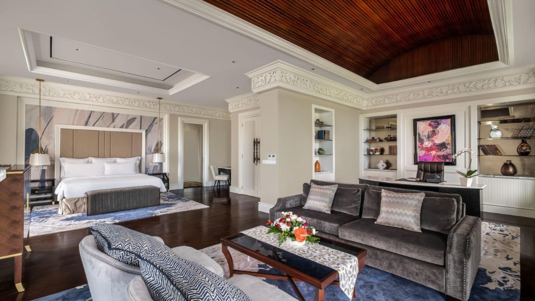 Furthermore, the accommodations are equipped with thoughtful amenities that cater to your every need, including a pillow menu, a well-stocked minibar, complimentary coffee and tea, a work desk with a lamp, and more. InterContinental Bali Resort has artfully blended modern convenience with the signature elements of traditional Balinese architecture. Case in point – you can appreciate the contrast of the tropical hardwood floor and a light-coloured wall adorned with paintings in all rooms. Headboards would also be great to highlight because we love their intricate carved designs that undoubtedly add sophistication to the whole vibe of the room.Â