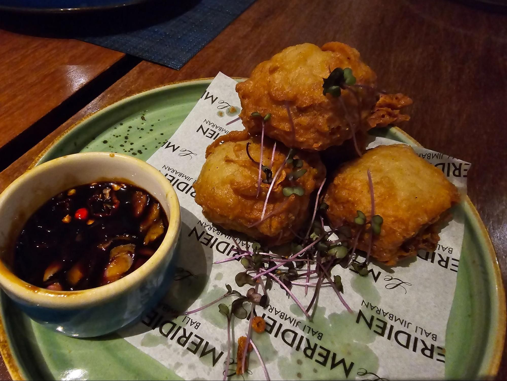 Bamboo Chic at Le Méridien Jimbaran Bali offers an innovative culinary journey filled with vibrant Asian and local Bali flavours. This all-day dining destination offers a delightful combination of delectable buffets and à la carte options, all set against the backdrop of an open kitchen. Their dinner options are pretty great; we had Pork Ribs, aromatic Thai Prawn Yellow Curry, and so on. We must say that the standard is good!