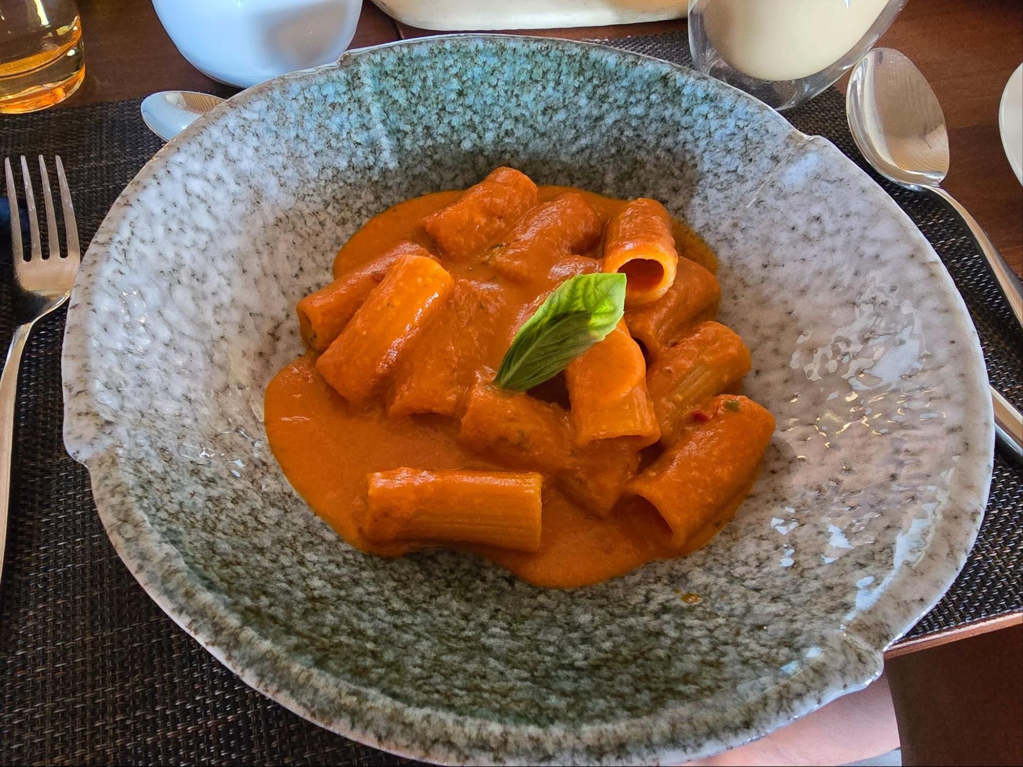 If we had to pick a favorite, it would be Souq Oven. This overwater restaurant brings the rich, rustic flavors of the Italian countryside to the Maldives, beautifully paired with a curated selection of international wines. We went there often for lunch, and I lost count of how many times I ordered the Rigatoni—it was that good! The Sea Bass was also a highlight — so tender and melts in your mouth, with the texture of eating a black cod fish. It was so delicious that out of the eight adults in our team, seven ordered it, and that speaks volumes. Coffee there is great too, and we appreciate the great selection of mocktails and cocktails. They even have a non-alcoholic Rosé champagne with all the bubbles!
