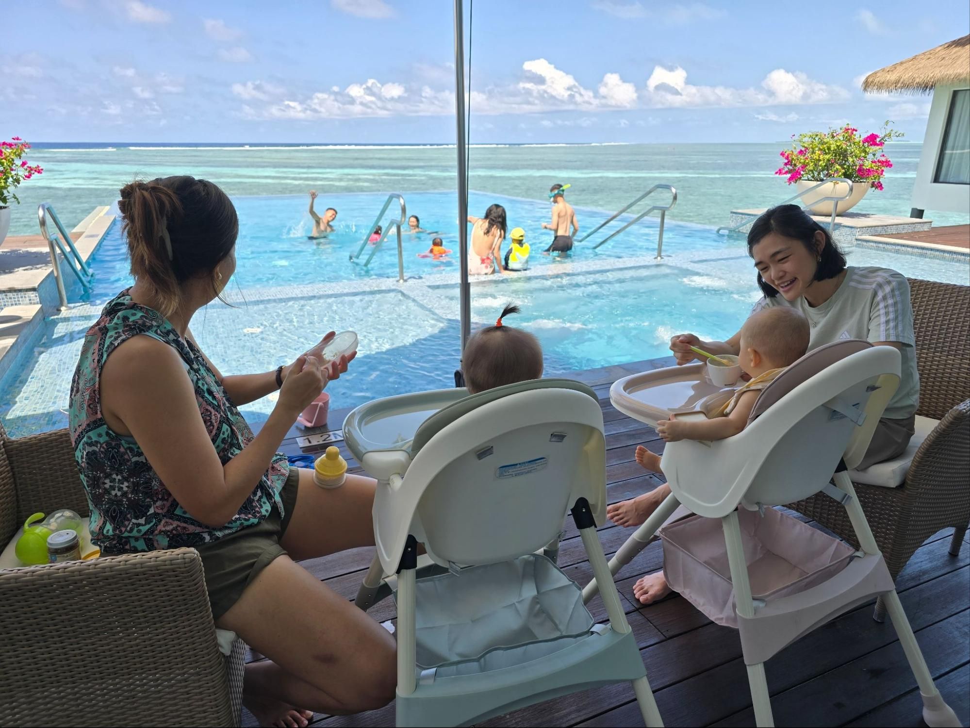 The dolphin cruise was easily one of the best we’ve ever experienced—even after multiple trips to the Maldives. We’ve been here 4 times already, but the dolphins this time around were surreal. It’s almost like they pulled off a show for us! We got to enjoy the show with the beautiful sunset and cold sea breeze. To top it all off, they gave us champagne, although unfortunately, the drinkers in our group were left in the villa to take care of the babies.