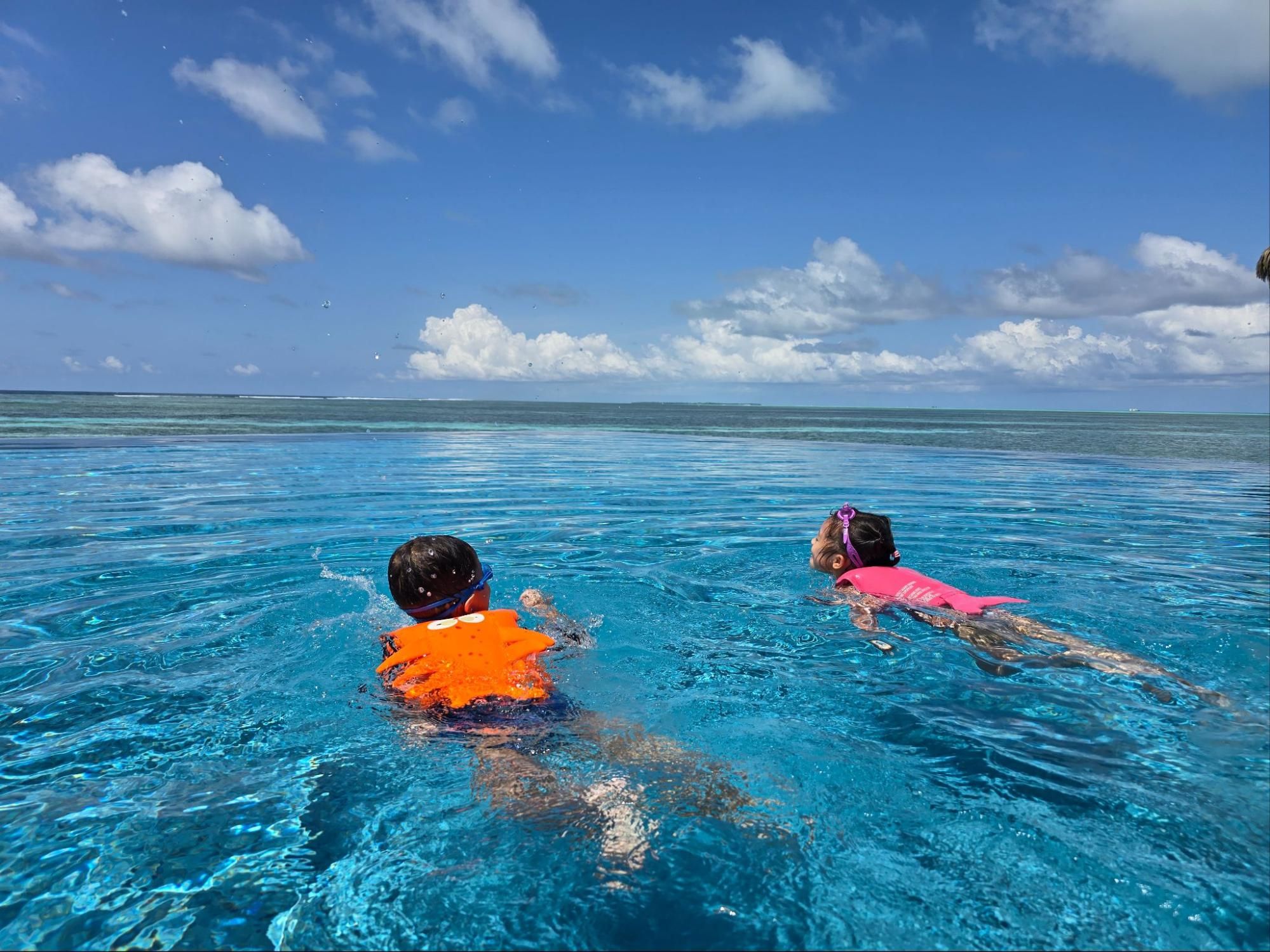 The villa’s expansive sun deck is designed for both unforgettable moments and effortless relaxation—perfect for a private catered dinner under the stars or simply unwinding in paradise. And of course…the best part of our villa was the pool, probably one of the largest private overwater infinity pools in the Maldives. There is also a jacuzzi for the adults, while babies can splash around in the wading area.