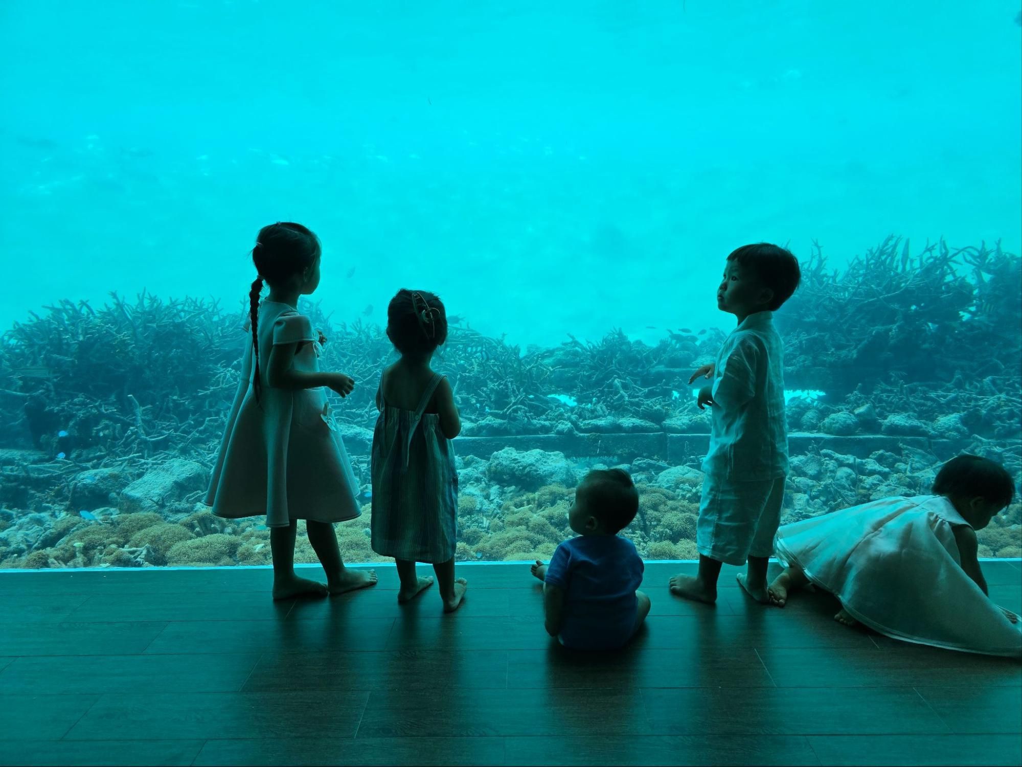 If you’re staying in a larger villa like the Four Bedroom Ocean Pool Retreat but still want a taste of the Aqua Villa’s magic, consider booking the Aqua Villa CanapĂ© Experience. We chose this option and absolutely loved it. We spent hours in the submerged bedroom, mesmerised by the ever-changing underwater view from your private aquarium. From reef sharks and stingrays to cuttlefish and even a rare lionfish, the marine life was simply incredible! The kids were so fascinated with the view. And of course, the experience was made even more special with a delicious selection of canapĂ©s, thoughtfully paired with non-alcoholic champagne after we mentioned most of our group didn’t drink.